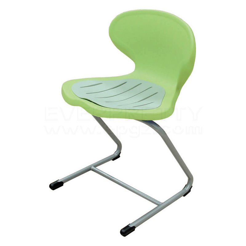First, please observe the overall shape of the seat and back of the chair. What do you think it looks like? That’s right, the design of this student chair is derived from the seashells on the beach, the curved seat edge, and the unique size, which constitute this shell-shaped student chair. We have chosen the green color for your eyes, which can make students’ eyes in a highly concentrated state for a long time have a more comfortable visual experience and relieve the pressure on students. The two sides of the backrest are wide, which is the most ergonomic radian after many innovative designs and can surround the students’ backs in all aspects. We have prepared a cushion on the chair, so students won’t feel uncomfortable after sitting for a long time. The frame is an L-shaped iron pipe with epoxy powder-coated, which is rust-resistant and durable, while an ABS pipe plug is used to fix the chair. In addition, there is a rail connecting two desk legs, which has strong support.