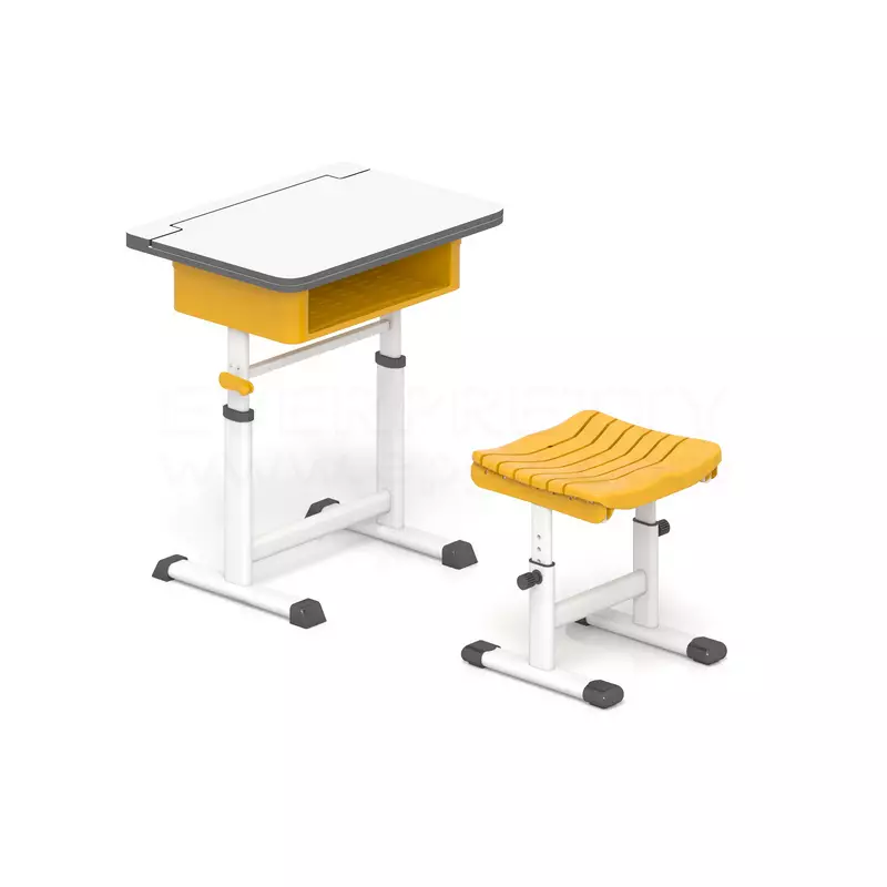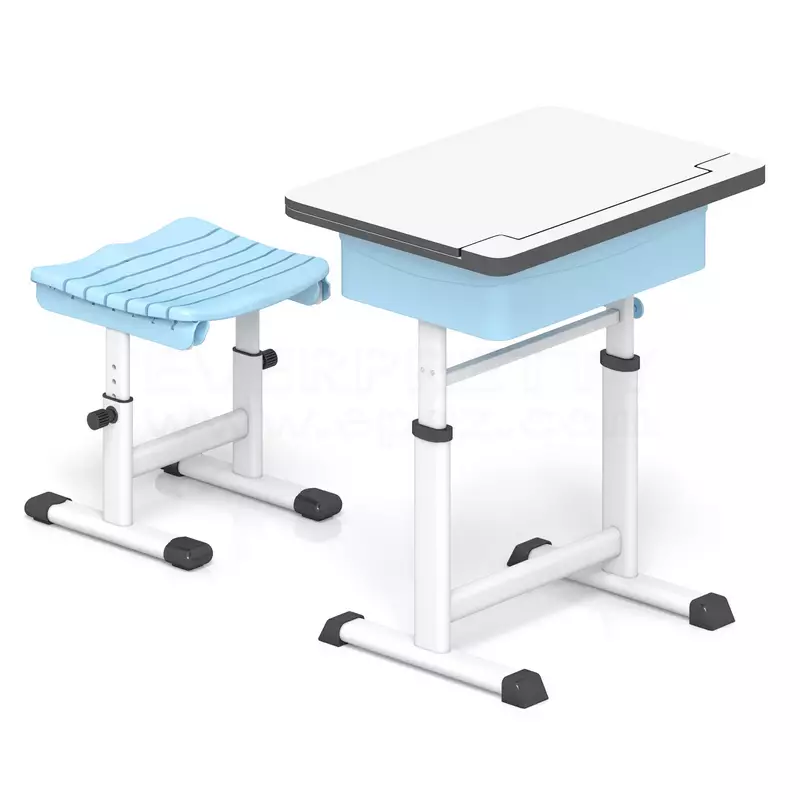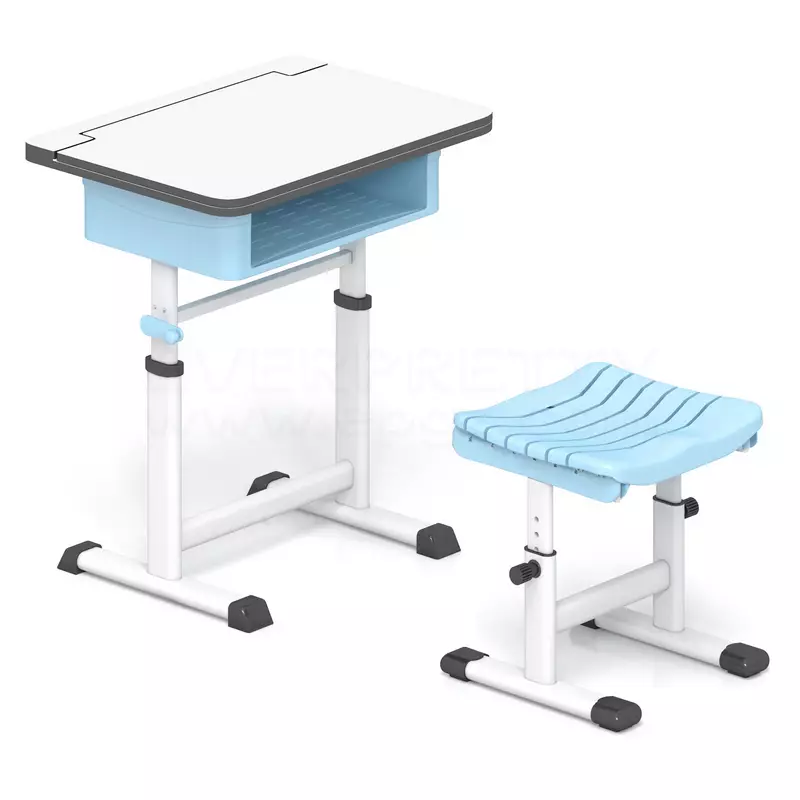 The desktop version of the desk is a 16MM Polypropylene plastic table-top, the whole table and chairs are made of 25*50MM+30*70MM+30*60MM oval steel pipes and also equipped with high-quality reinforced Polypropylene plastic hanging buckets. At the same time, the style is made into an adjustable style, which can be used by students of different ages. Transform the original traditional design into a modern one to meet the aesthetics of students advancing with the times, makes your school more in line with the ever-changing society and attract more and more students as well. Both the desk and chair are height adjustable and can be used by elementary, middle and high school students at the same time. The round desk design can effectively prevent students from accidentally touching the table and getting injured. The desktop can be adjusted upward to adjust the angle and height, making students’ writing more convenient and comfortable. The desk comes with a large-capacity drawer, which is convenient for storing things and cultivating the students’ habit of storing things in place. The chair back is ergonomically designed, which can effectively relieve fatigue, correct the spine line, and create a good sitting posture. Upgraded thickened iron frame, safe and stable without shaking. This product strictly selects safe and environmentally friendly materials to protect the health of students. If you have purchasing needs in the near future, please contact us to purchase modern school furniture, to make your campus keep up with the rapidly developing teaching concept and campus construction level.