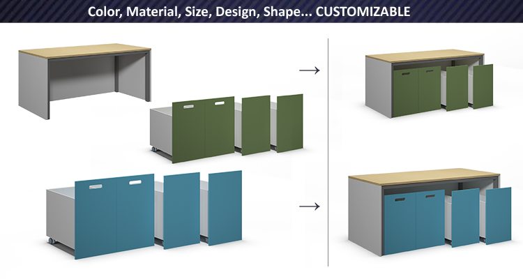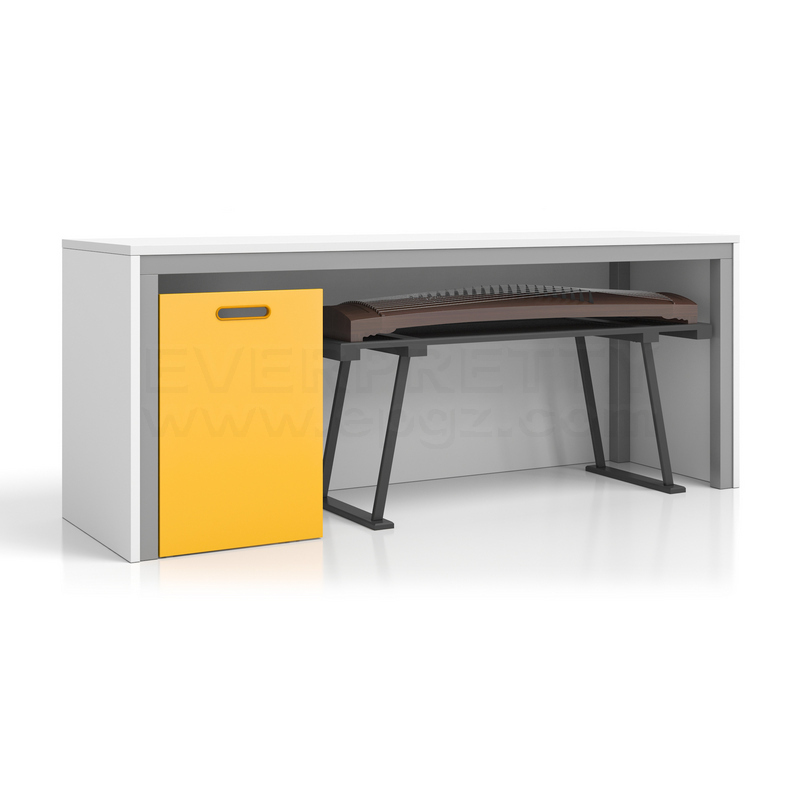 This is a table with a locker. The table is made of high-quality HDF with melamine raw materials, which are scratch resistant, waterproof and very durable. The cabinet has a large capacity and can store many things. The cabinet is removable with wheels, which is very convenient. The space under the table is very large. You can see the zither and some other musical instruments. This is a very practical table. If you are looking for a table, this table is a very good choice.