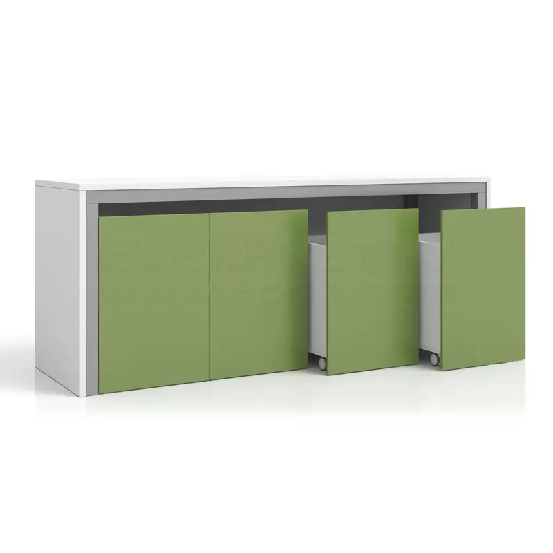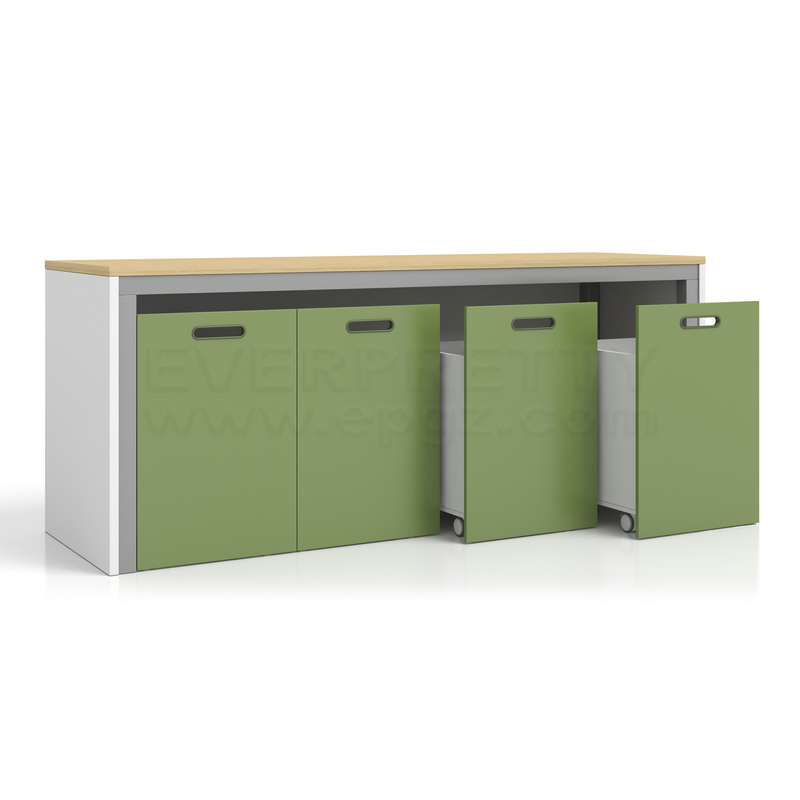 This is a multifunctional product. It can be used as a table in the preparation room, and the desktop board is easy to clean; it can also be placed in the children’s area, and put some storage boxes under the table to become storage cabinets to store children’s things.