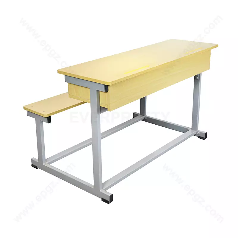 EVERPRETTY Classroom Furniture Fixed Double Wooden Desk and Bench Set