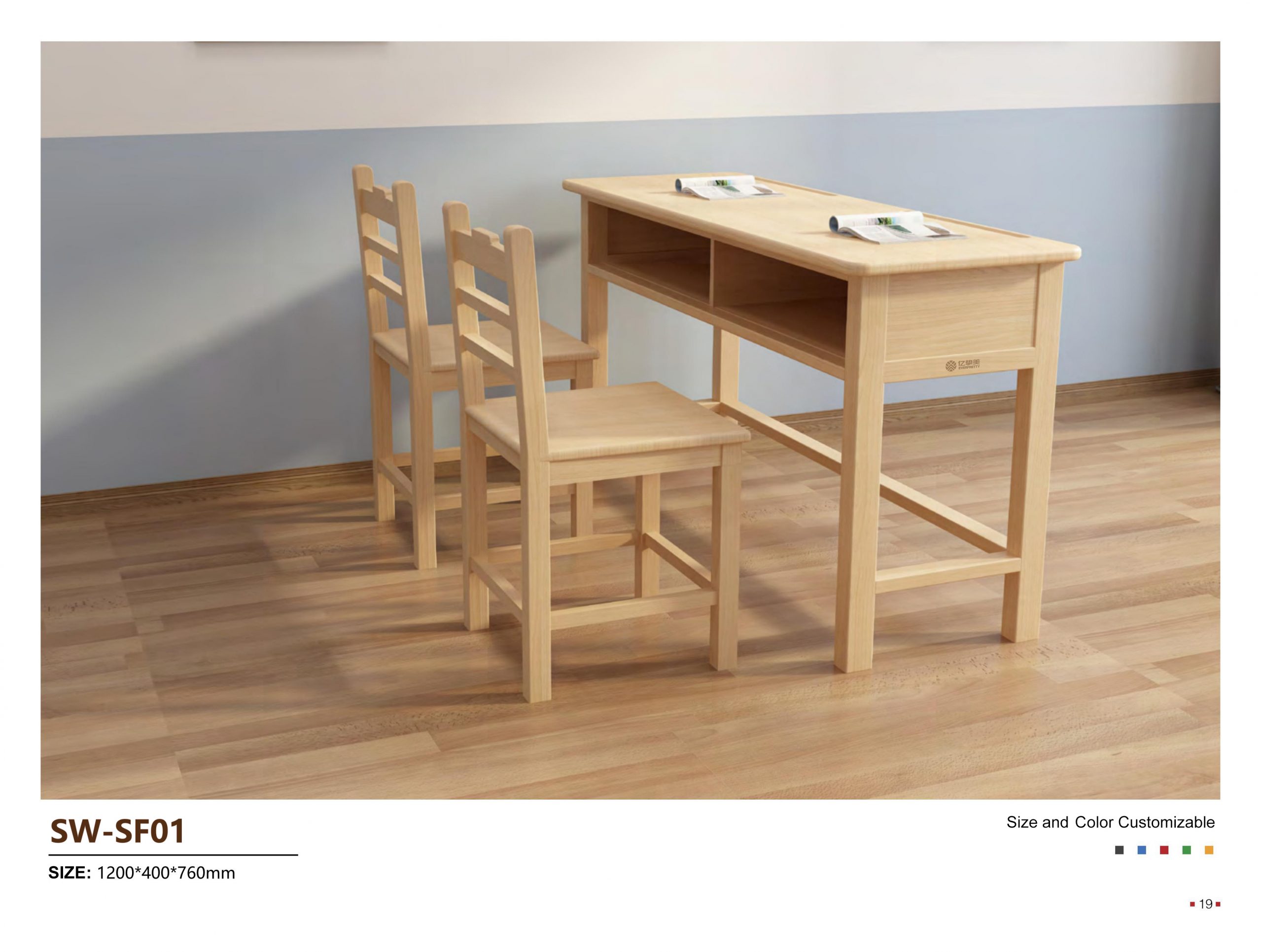 Durability and longevity: The use of solid wood in the construction of the desk and chair ensures durability and longevity. Solid wood is known for its strength and ability to withstand regular use, making it suitable for school environments where furniture needs to endure daily wear and tear.