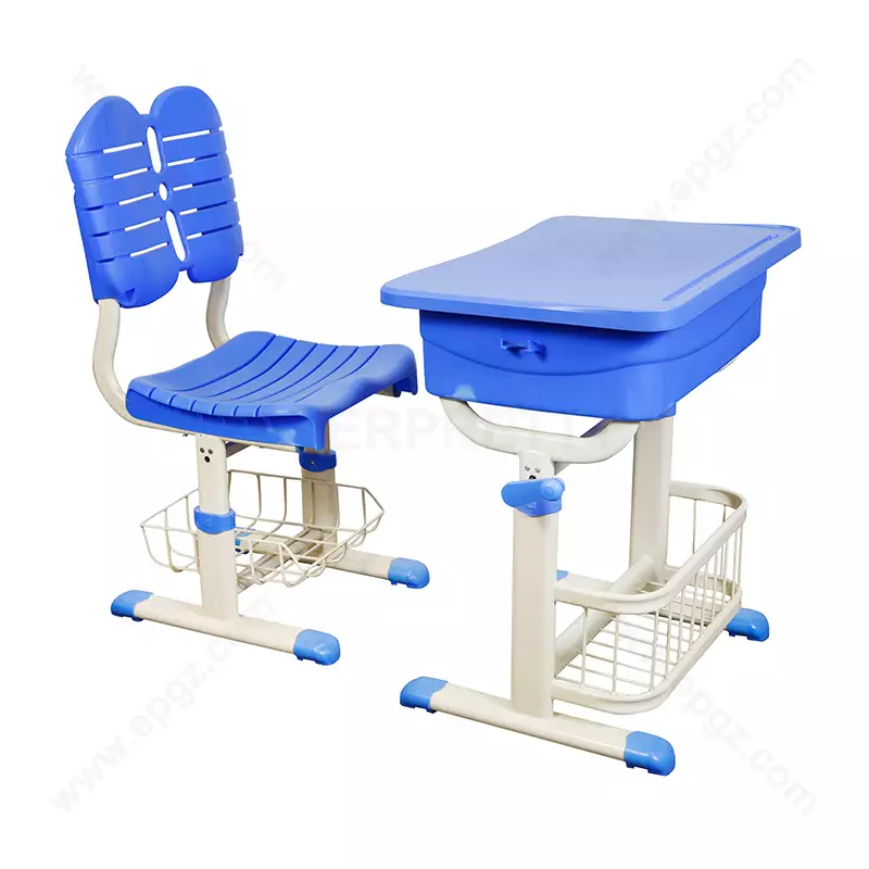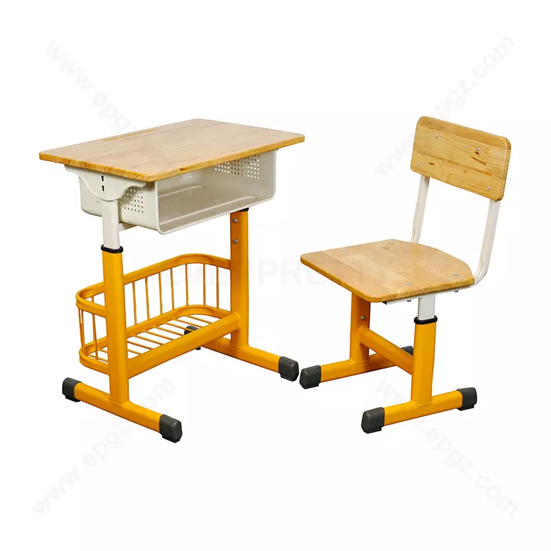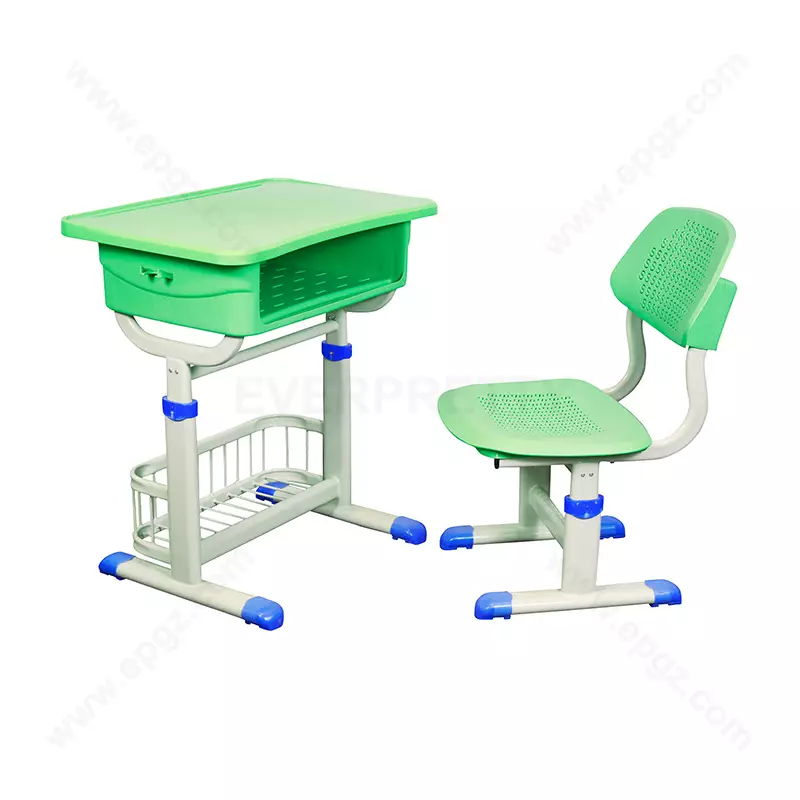 The tabletop is made of wood and plastic together, and the plastic edge is helpful to protect the students from being scratched by the edges. The seatback of the chair is made of plastic so that its weight will not be too heavy, which is conducive to the movement of students.