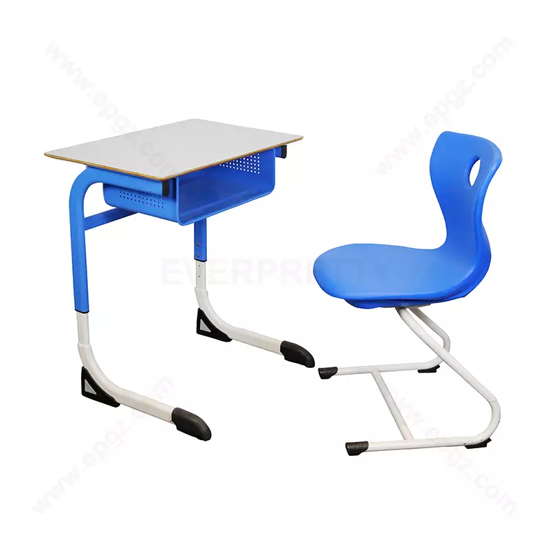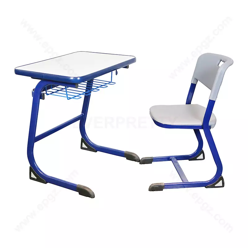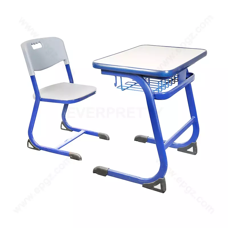 Hot sales school desk chair for students, soft PU edge design, comfortable for students. there is a book basket under the desk, students can store their books and belongings. LOGO can be customized in EVERPRETTY.