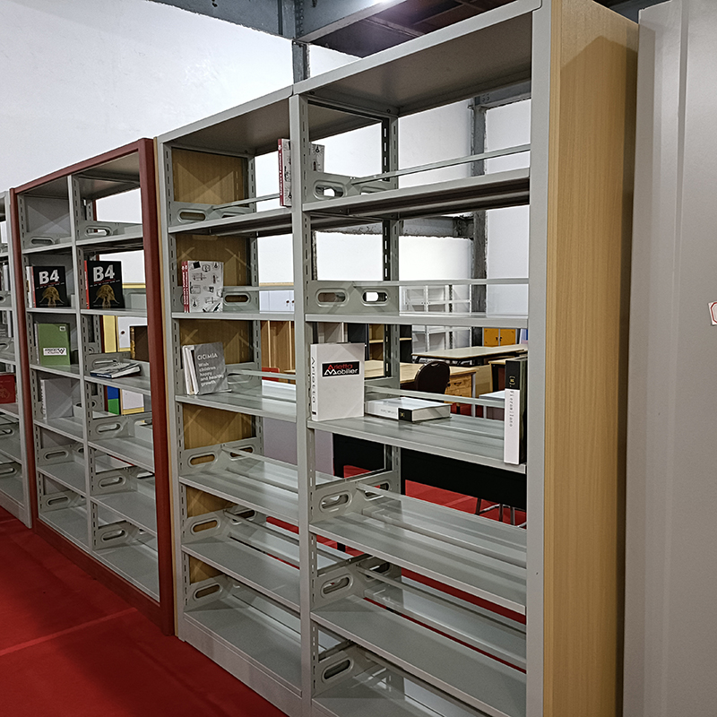 The School Library Furniture Multi-Layers Double-side Bookshelf is a very ergonomic and economic design for the library. In a new library, we always can see some of this furniture. Why do they want to choose this furniture? Those are the serious reasons for that. First of all, this bookshelf can be adjustable on the layer height. You can see we add many holes on the frame to make the layer height can be adjustable just for suiting the height of the books for we can put the book appropriately. That way we can protect the book more safely and keep it from hurting students when it falls down accidentally. Secondly, on the outside part, we use the fireproof board to keep it more beautiful and cleaner. Also, we use Materials that are not easy to rust to make the shelf to make sure it can use more than 10 years without changing any of them. That is why many customers like this furniture.