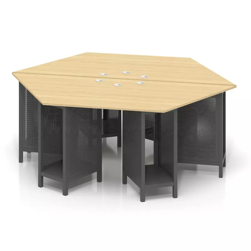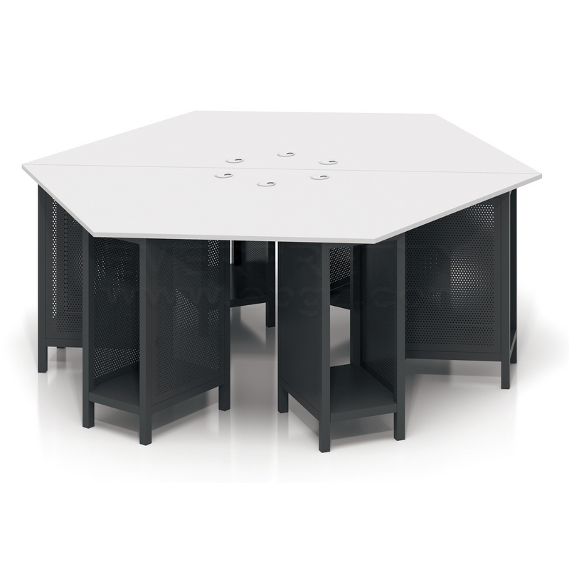 With 28 years of experience & 79100sqm land on school furniture, we provide 100% customizable all-around school furniture solutions covering project consulting, bidding, planning, design, sample, manufacturing, delivery, installation, and after-order service. 6-person computer desk, the main material is 25MM density board, melamine board as the surface, and the polyvinyl chloride edge, 30*30 steel pipe frame + punching mesh board for the wire box.
