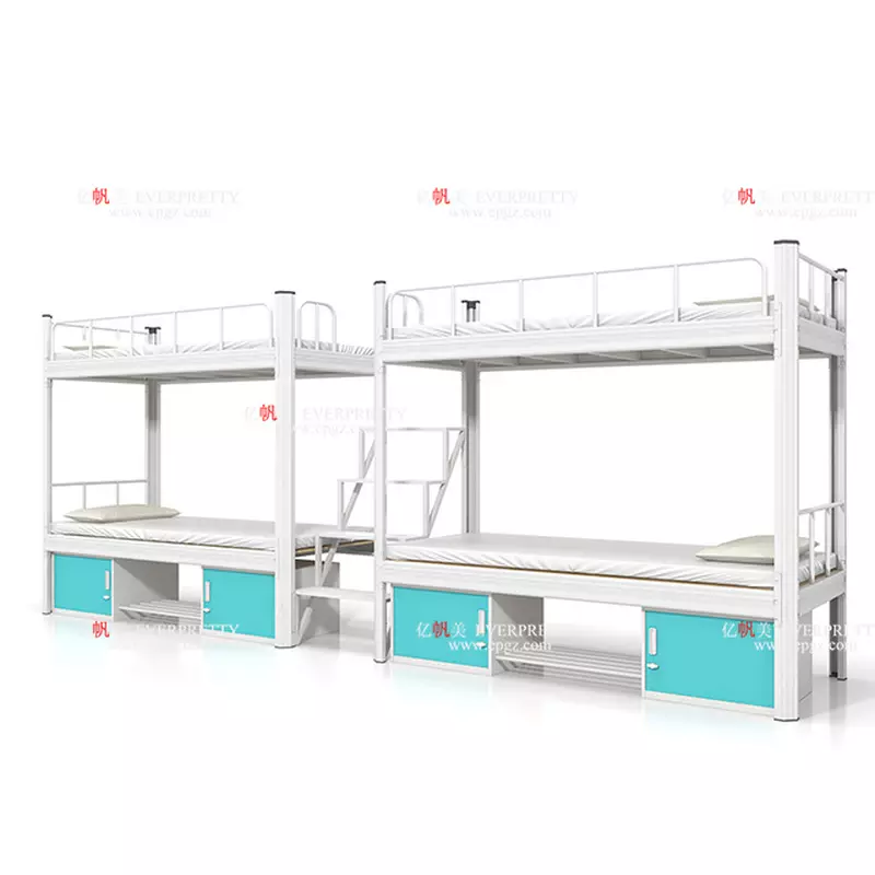 The Double Bunk Bed with cabinet is designed for the Staff Dormitory. This design is very steady in structure. This bed is perfect for the staff dormitory because there are 4 beds in the bunk bed so that can save space. A high-Quality Everpretty bunk bed is ideal for any dormitory. Our bunk bed was designed with elegance and class in mind. Our twin bunk bed have safety features to ensure that any person or student is prevented from falling thanks to the durable guardrails. We can customize the size of the bunk bed so it will perfectly fit your room size. If you are interested in our product, please come inside and see our product’s details.