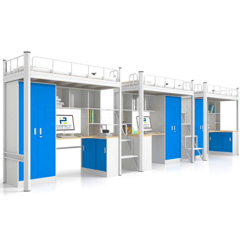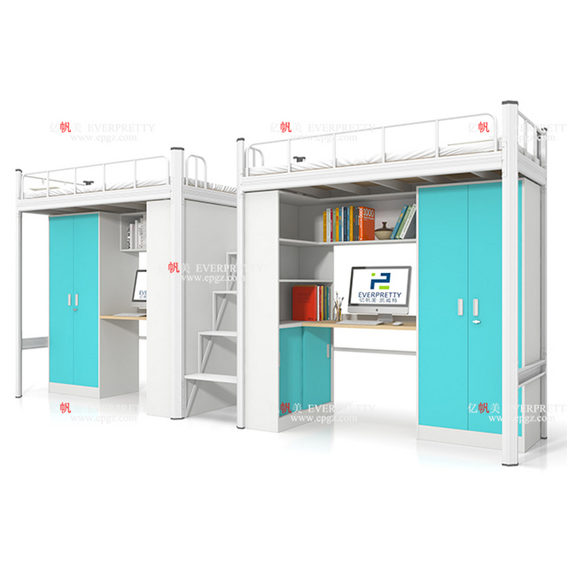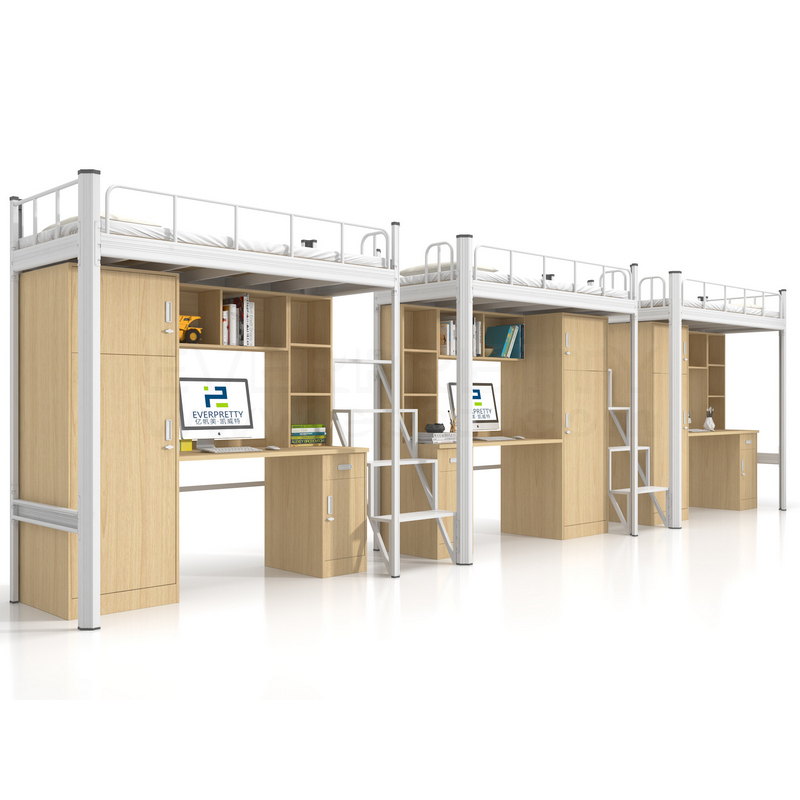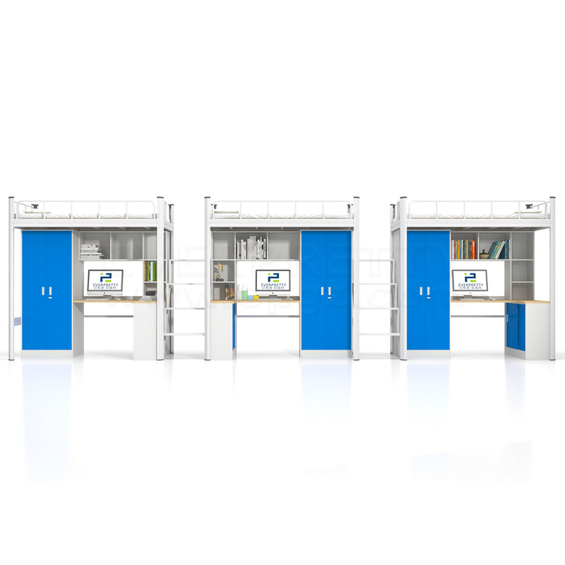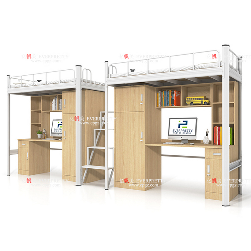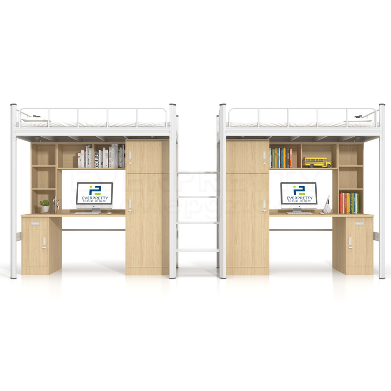 For this type of bed, we can see the clearest advantage is this bed is using stairs instead of a ladder which is much easier and safer for students to climb on it. Why we are doing this because we want to make the dormitory life much easier and safer for students. You don’t have to take the risk of falling down from the bunk part. And as the norm, we will make a study desk and a storage part for storing your personal belongings. A Loft Bed With Study Table is a great option for a student’s dormitory. The extra space beneath the bed can be utilized for storage. This is an ideal location for homework, and a desk can help make studying fun. The desk can also be used as a storage area for clothes and school supplies. Having two beds with a study table can also increase the room’s square footage, making it the perfect choice for a small room.