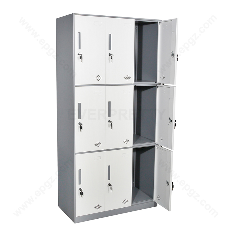 EVERPRETTY metal locker cabinet is designed to provide personal storage space for students in group life. There are 9 storage units in this metal locker storage cabinet. Our metal locker wardrobe provides more space to put your accessories to keep your dormitory organized and tidy. And each storage unit is equipped with a lock so that it can be locked individually. No matter whether you lock up some documents or store your personal belongings (money, clothes, etc.), this steel locker cabinet is the ideal storage solution.