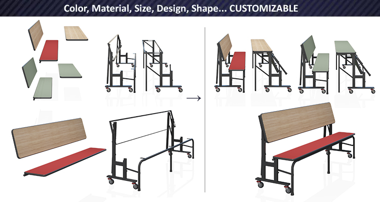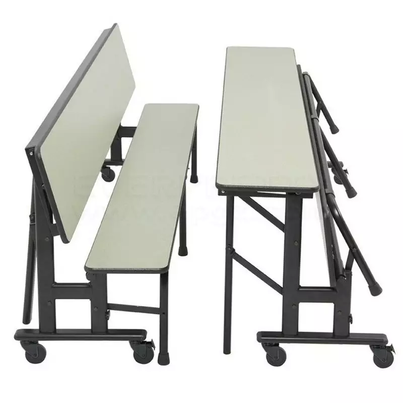 EVERPRETTY rectangle dining table with bench gives you the flexibility to quickly accommodate seating or dining situation in any school cafeteria, canteen, or meeting hall. Our mobile dining bench table with wheels brings great versatility to different occasions.