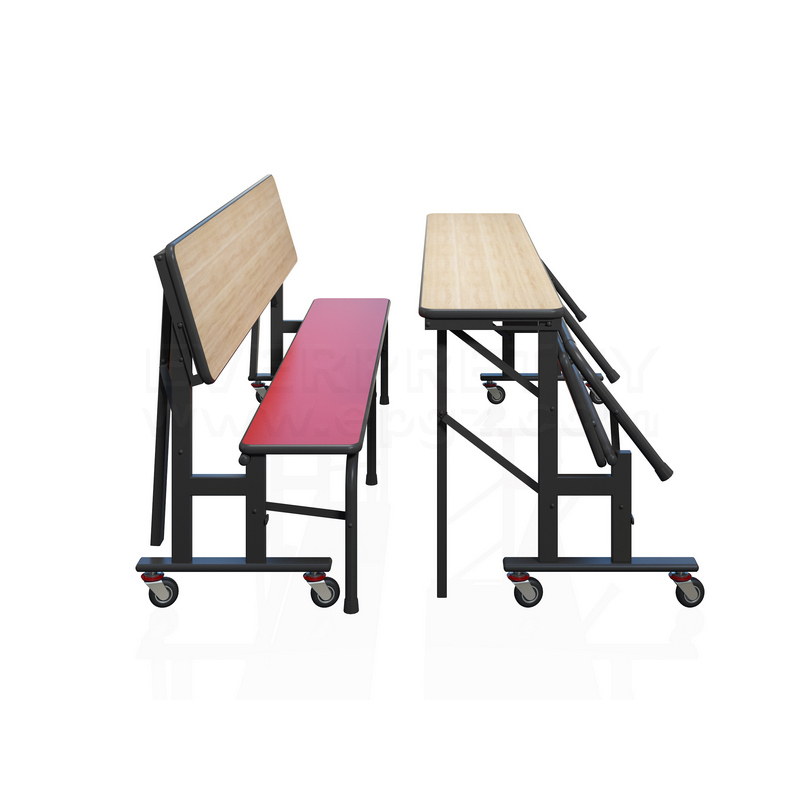 Adopted premium HPL and sturdy metal frame, the canteen table with bench is quite sturdy and long-lasting. With a compact and foldable design, this dining table can be easily lifted and folded for convenient storage. In addition, our dining table with bench can be converted into a comfortable bench with a back for meetings or group discussions. Choose your favorite color to create a perfect and comfortable dining environment with our rectangle dining table with bench!