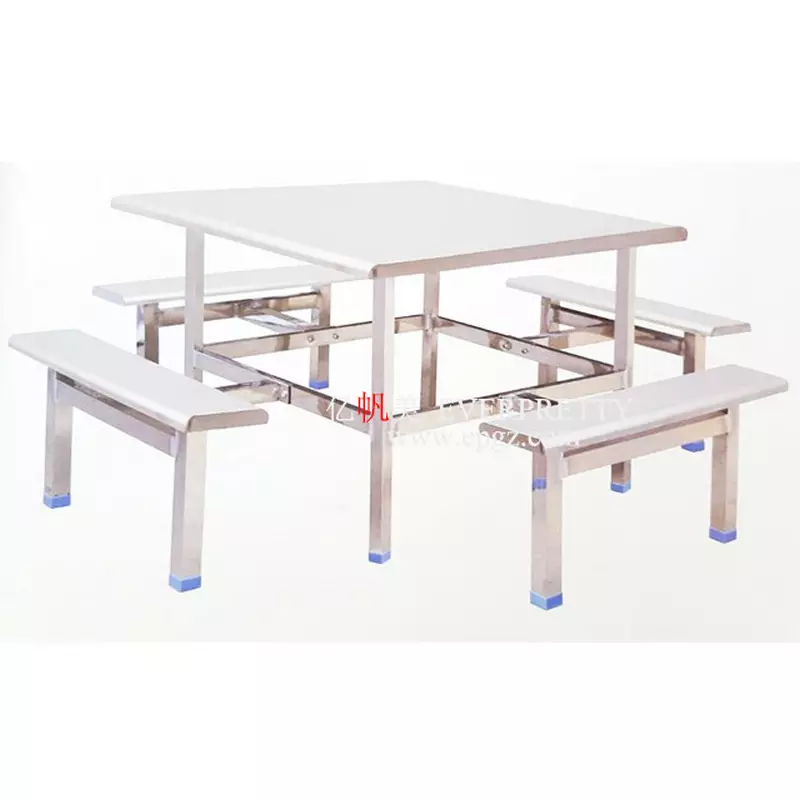 All table and bench are composed of stainless steel with soft rubber feets that will reduced friction on the floor, also reduced moving noise.
