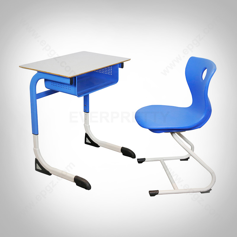 This student single desk and chair is fashionable design in the frame and material. For this model, the desk top is made of different material in compact board, not the melamine board, the frame with round shape is strong and anti-rust, with polypropylene(PP) caps to keep balance and reduce noise. The chair is made in polyethylene(PE) material on the seat, which is ergonomics. All products in EVERPRETTY are considered about the safe, practical, fashionable and more conditions. And also, this student desk and chair can be height-adjustable for suiting the students’ height from primary to high school. If you want to put this school desk and chair in a classroom that the floor is not very smooth and flat, you don’t need to redo the floor again. You can just adjust the height of our stopper for suiting the floor. It will save you more time and cost. For the chair, we have redesigned it many times for just to get the most comfortable sitting angle for all the student. Finally, we make it came true. It is very ergonomic and comfortable. This chair now is not only suitable for student but also for adult. The whole back sit is completely fit in human body’s spine curve, so that is why it is so comfortable.