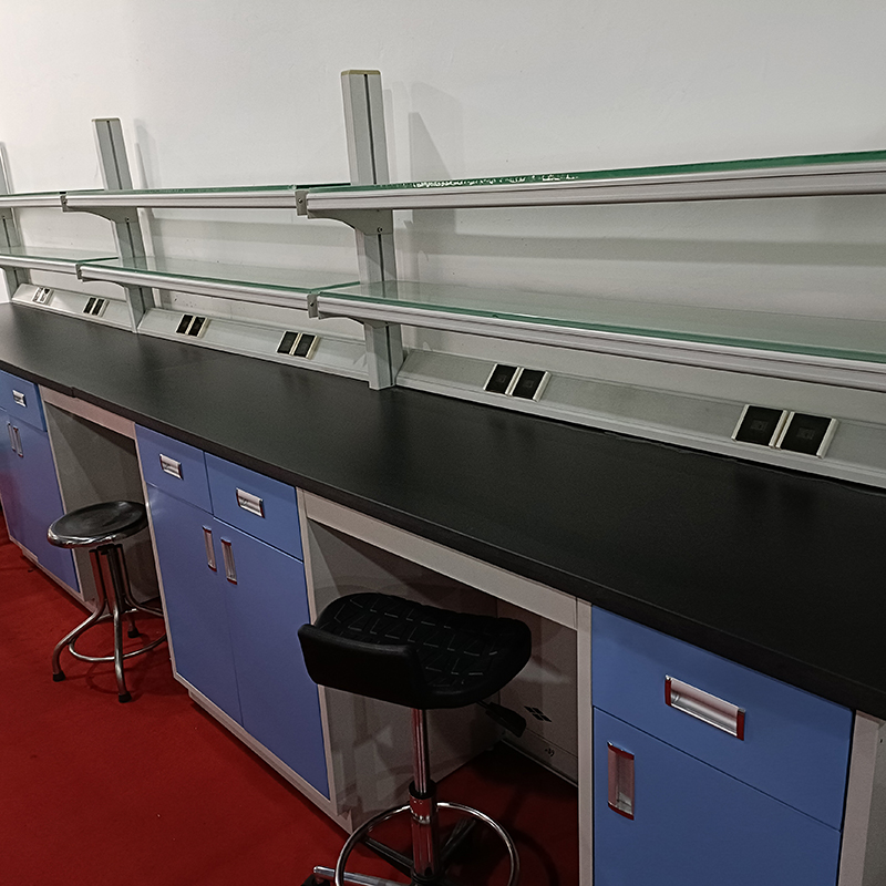 The School Laboratory Furniture Wooden Lab Side Table with Water Sink & Storage Cabinet is a very nice product case for how we design the laboratory room for our customers. This is a lab side table, which means you can put it near the wall or the windows. And it wouldn’t waste any room size for you. As usual, we will use resin board which can protect furniture from the damage of Acid and Alkali as the table-top of the lab side table. And also, the resin board can resist the damage from water and fire, and besides that, it can be anti-scratch. As a professional manufacturer for Laboratory Furniture, we always know the cleanness is the most vital thing in a lab. So, we add a frame around the furniture to make sure the cabinet will never touch the floor, and this gives some space for students or cleaning staff to clean the base of the lab side table. Also, it creates a very dry environment for the experimental equipment which we know some equipment may need. Maybe some of your viewers notice that we didn’t add any socket to this side table, right? That is because this table is purely designed for the chemical lab, we don’t add the socket to protect the student from the electric shock which may occur by putting the liquid around the socket. We all know every experiment is invaded with chemicals, you always will need water to clean the chemical, right? So, we design a water sink on the side table to make sure everything is ready for you.