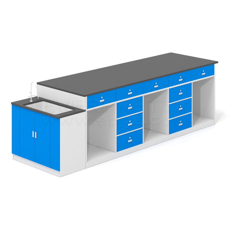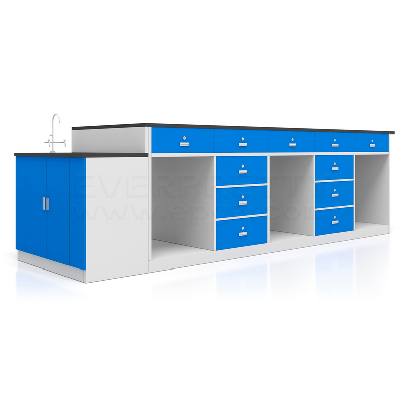 With 28 years of experience & 79100sqm land on school furniture, we provide 100% customizable all-around school furniture solutions covering project consulting, bidding, planning, design, sample, manufacturing, delivery, installation, and after-order service. The countertop is 25MM solid resin board, and the other 18MM aluminized board, with five drawers in the top row, five drawers in the bottom with six drawers, and a pair of open-door wash basins on the right.